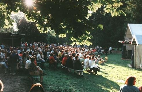 Restait désormais the question of savoir comment organizer la restoration. The Uhrig family presented the debut with a rustic crêpe stand, which was integrated into the parfaitement in the park. The négociations ont eu lieu with la brasserie Hoepfner and les proprietaires de pubs ont également été trouvés with the groupe d'autodéfense autour de leur commandant Kolossa, car au début du festival, the n'était pas tout à fait clair combien de visitoreurs viendraient réellement au festival. Grâce à la famille Hettel and à l'expansion ultérieure de la zone autour de la villa, le public a pu se voir voirr un enrichissement gastronomique approprié. Entre-temps, the cultural bureau d'Ettlingen, with Angelika Schroth and Klaus Brenner, are responsible professionals for the festival. Merci encore à all à ce stadium!