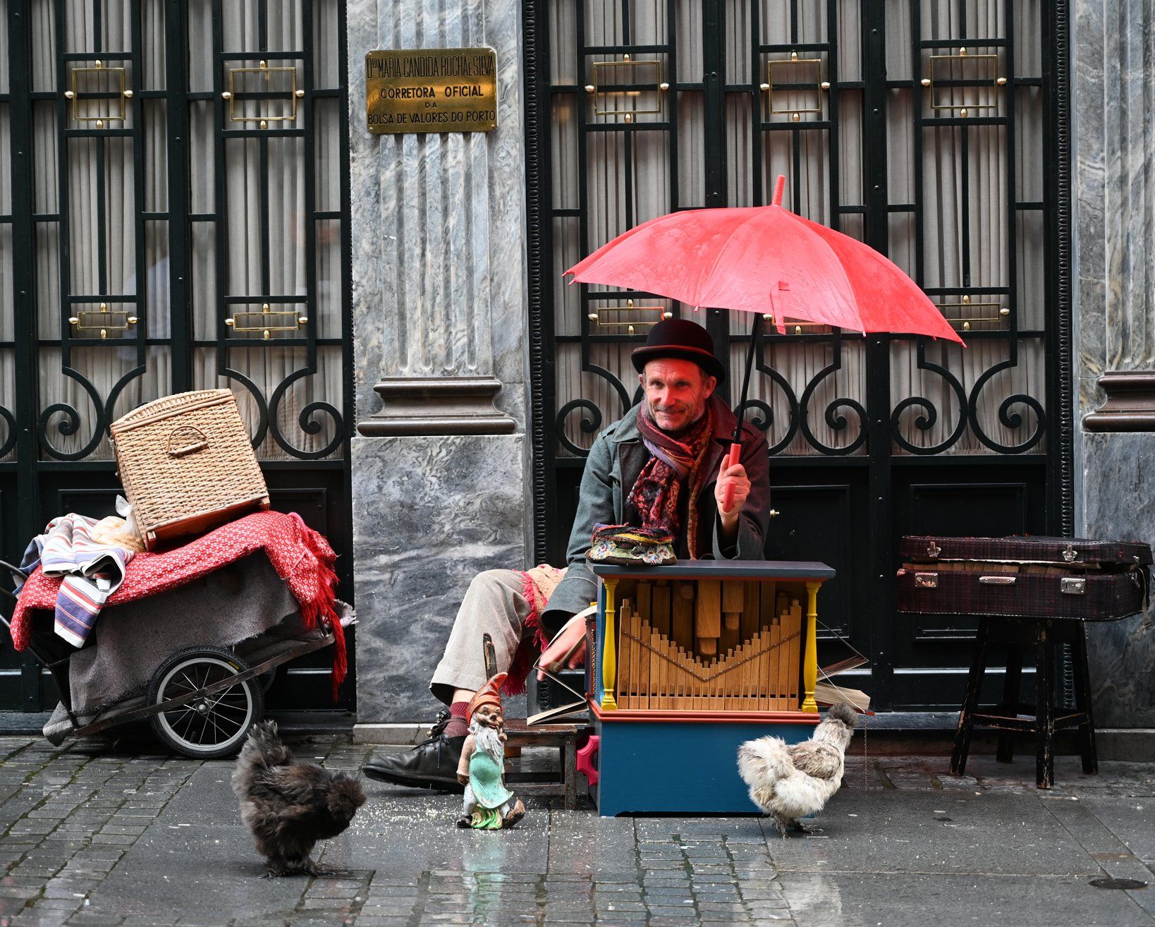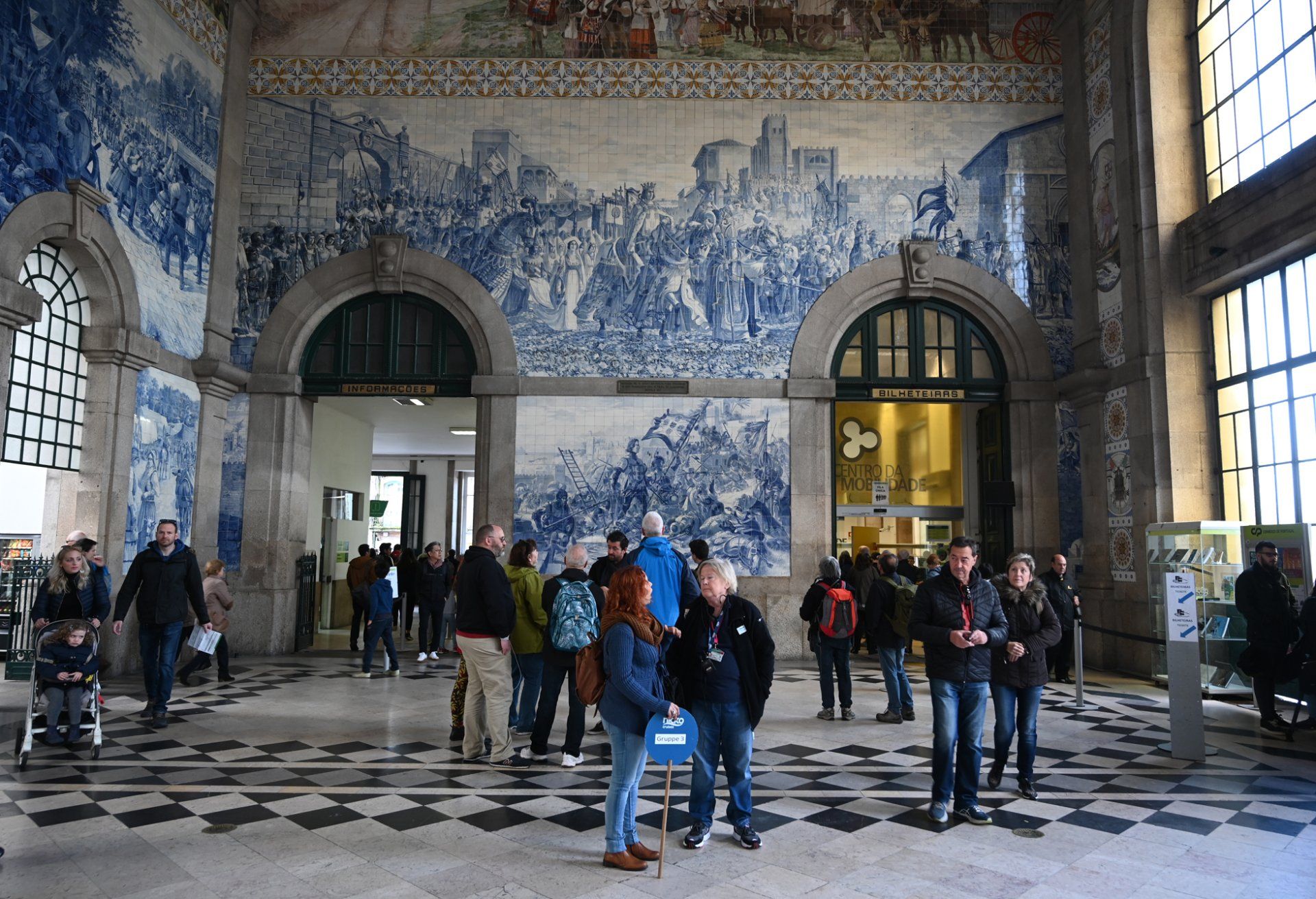 Aveiro jest oddalone o około godzinę jazdy pociągiem na południe od Porto. Miasto z typowymi kanałami tylko czeka na turystów. Można nimi jeździć po mieście motorówkami, nie do końca tak jak w Wenecji, bo są szybsze i trochę większe. Tymczasem w restauracjach bariści czekają na gości ze schłodzonymi napojami.< Kopffüsser > Przed dworcem kolejowym; w tle stary dworzec kolejowy.